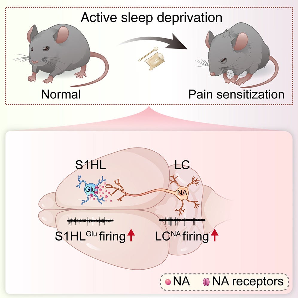 TL;DR: A recent study found that active sleep deprivation (ASD) from recreational activities leads to pain sensitization by stimulating noradrenergic inputs from the locus coeruleus (LCNA) to glutamatergic neurons in the hindlimb primary somatosensory cortex (S1HLGlu), and inhibiting this pathway can reduce pain sensitization.