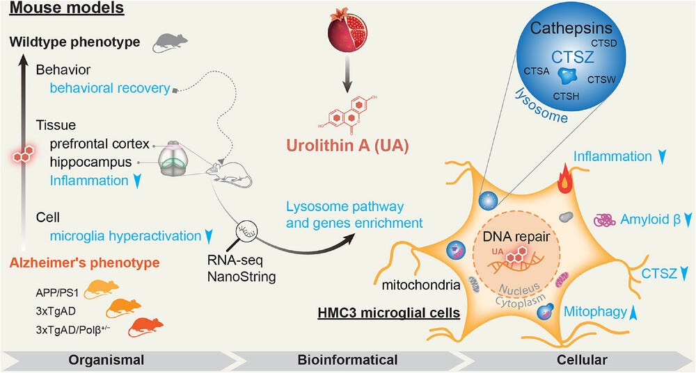 Alzheimer's disease (AD) is a disease that is predicted to have tripled in cases by 2050 worldwide. In a new study published in Alzheimer's & Dementia, Hou et al. investigate the effects of long-term treatment with urolithin A (UA) in mice. Urolithin A is a gut microbial metabolite of ellagic acid, a polyphenol naturally found in fruits and vegetables including pomegranate, berries and nuts.