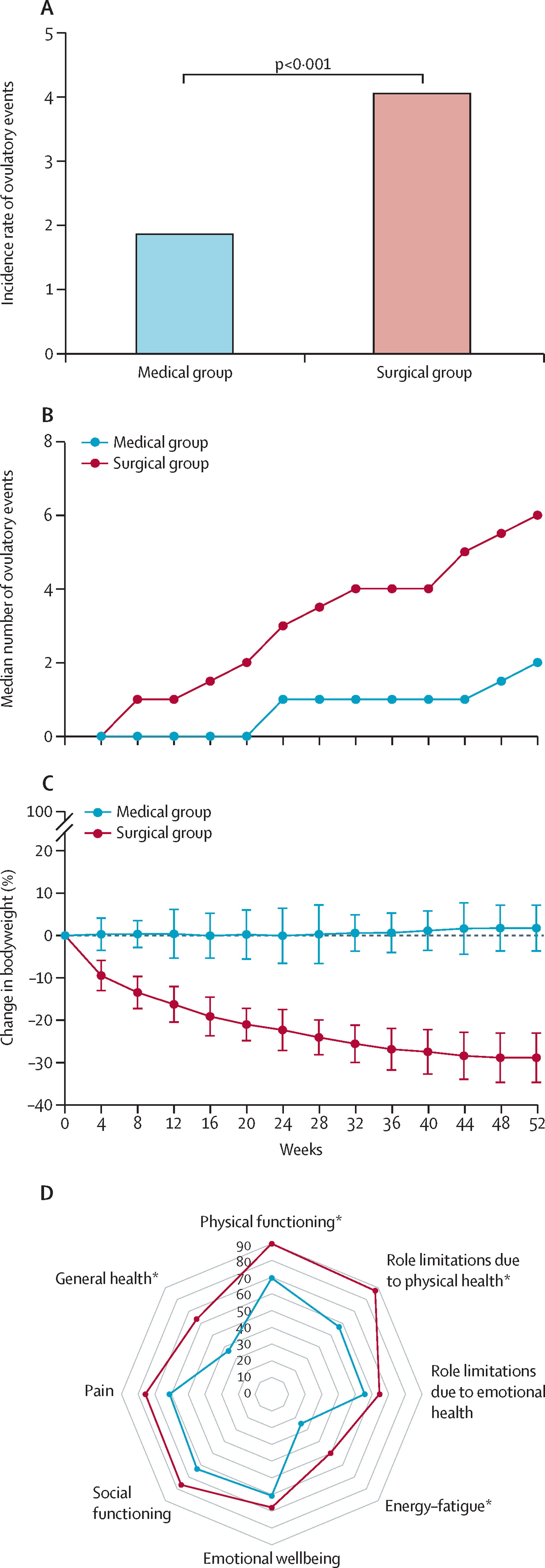The BAMBINI trial compared bariatric surgery (in this case, vertical sleeve gastrectomy) with traditional medical care in 80 women with PCOS and obesity. Participants were randomly assigned to either undergo surgery or receive medical therapy, and their ovulation rates were monitored for a year.