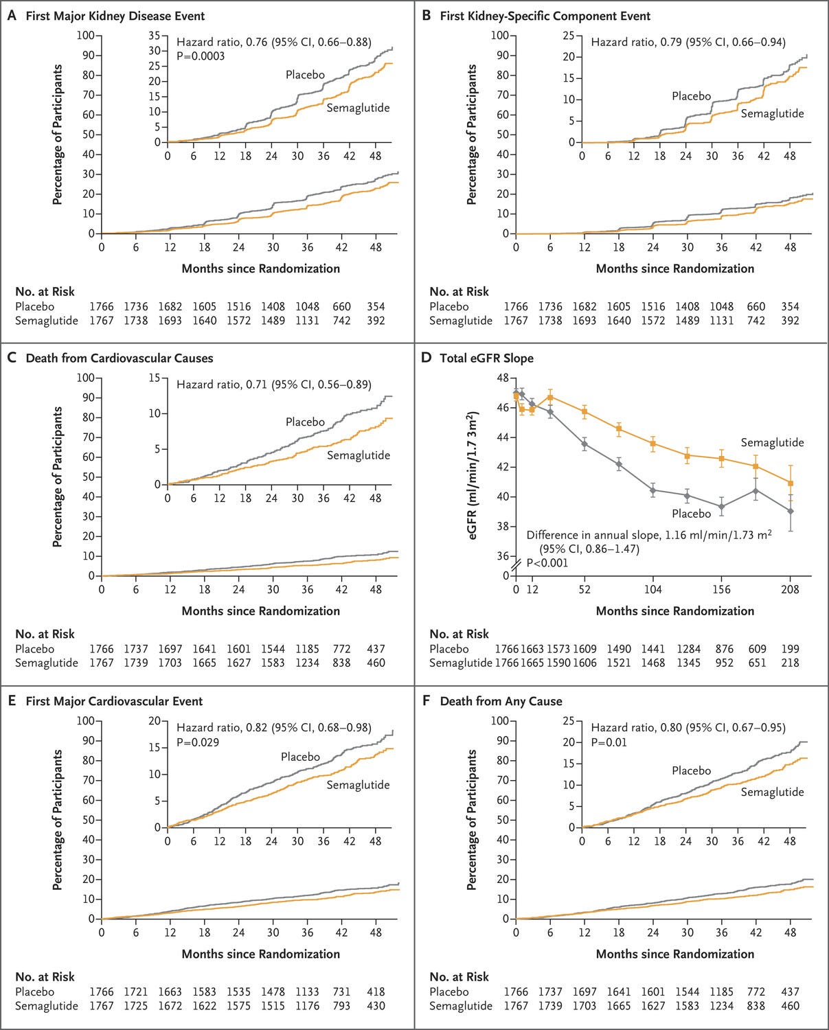 TL;DR: In a double-blinded, randomized controlled trial involving 3533 adults, researchers investigated adults with type 2 diabetes at high-risk of chronic kidney disease. Their findings showed that semaglutide significantly reduced the risk of major kidney faliure, the risk of major cardiovascular events and general mortality.