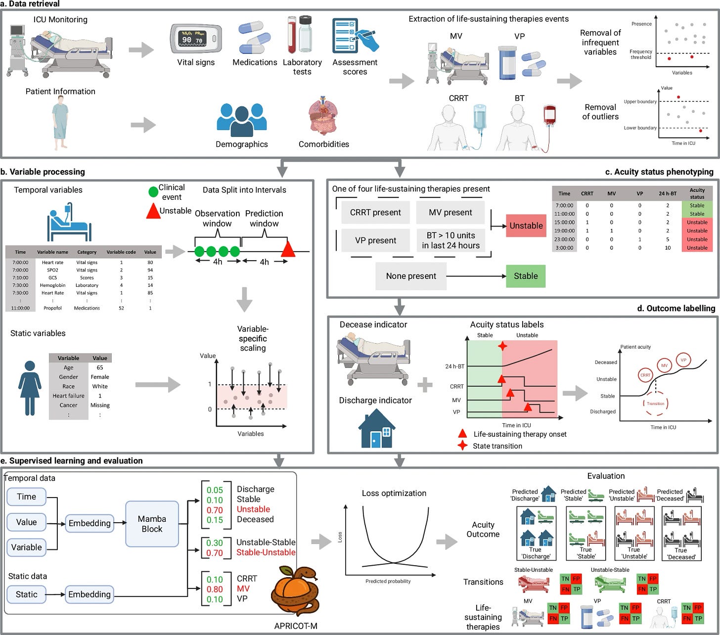 TL;DR: Researchers developed APRICOT-M, an AI model that predicts ICU patients’ stability and life-saving therapy needs within 4 hours, outperforming standard scores to enable earlier, more precise interventions.